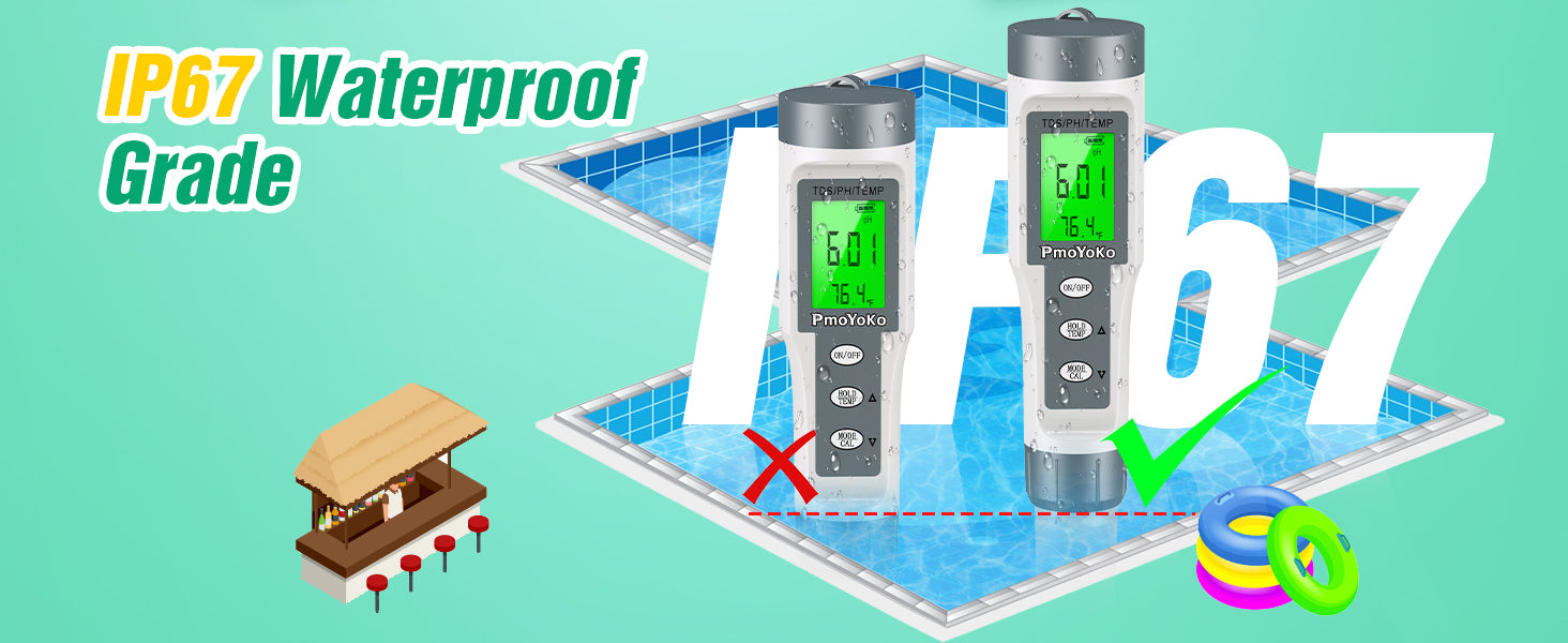 【Pocket Size pH Meter for Water】 You can use this small pocket size but powerful pH meter device to measure your aquarium, pool, pond in a garden, bath tub to test the levels of pH value. The digital ph meter can also be used to measure drinking water, RO System, spa, soap mixtures, wine, beer or any other liquids.