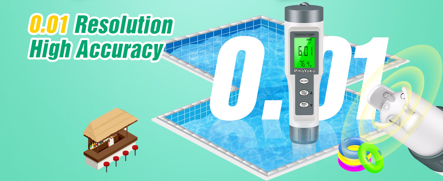 【High Accuracy pH Meter for Water】0.01 Resolution High-accuracy algorithm chip and electrode of our TDS meter digital pH meter ensure accurate and fast response. Green Backlit LCD Design guarantees that you can read the measuring results in any condition. One-button lock reading function helps lock reading even if the tds Meter is taken out of the sample!