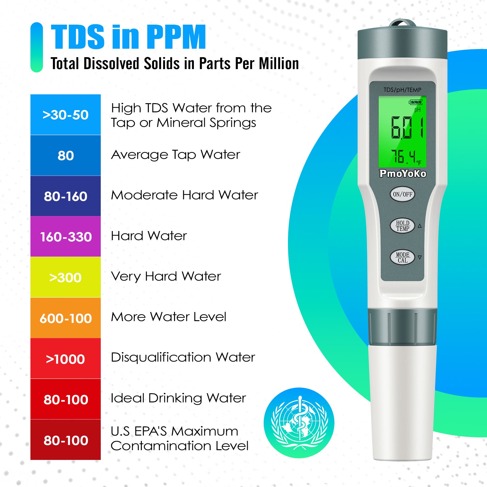 PmoYoKo Digital pH/TDS Meter with ATC pH Tester, 3 in 1 0.01 Resolution High Accuracy pH Pen Tester for Water with LCD Backlit, Tds Meter pH Meter for Drinking Water, Wine, Pool and Aquariums