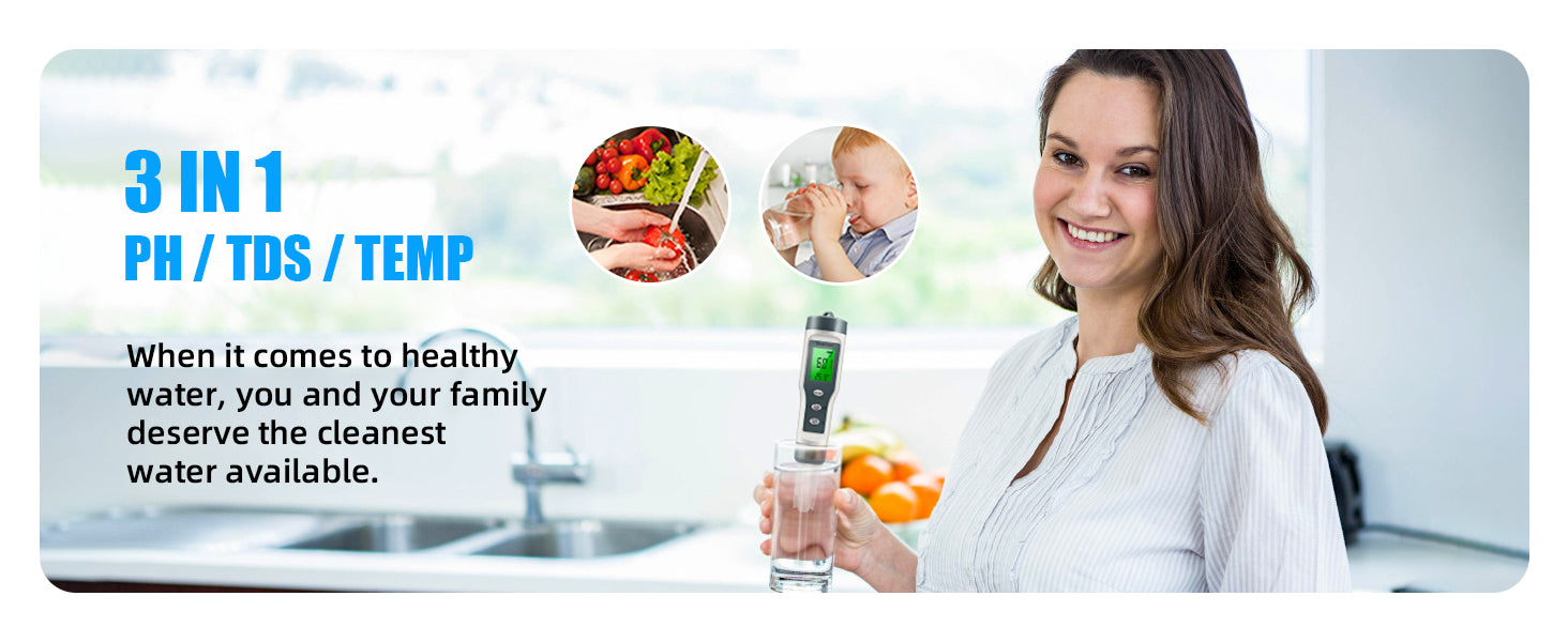 【3-in-1 pH Meter】pH meter for water has a three-in-one function, which can measure PH, TDS and temperature with high precision at the same time. All-round measurement of water quality to ensure healthy water quality.